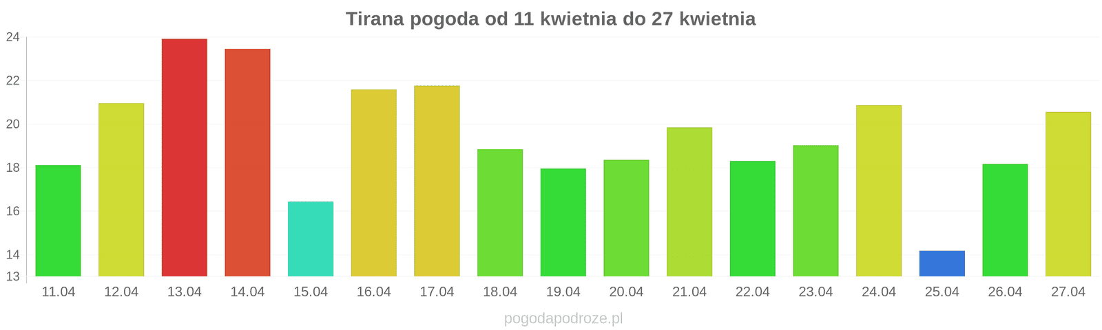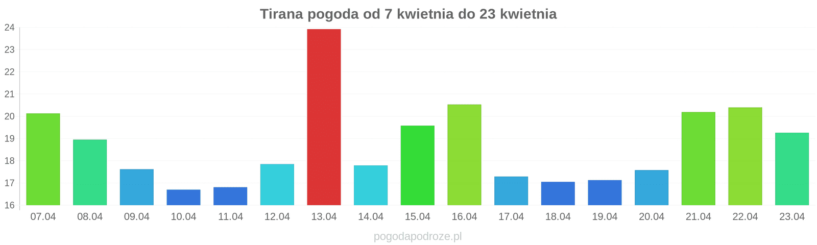 Pogoda w Tirana dnia: 13 kwietnia 2026 ( poniedziałek)