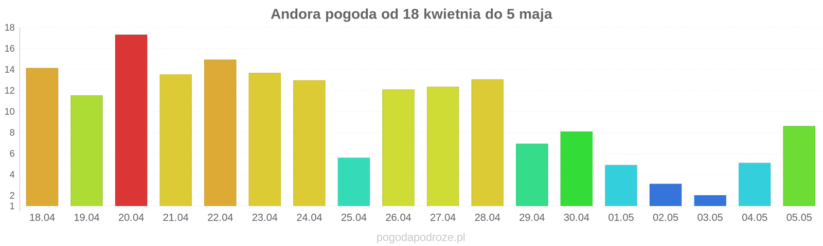 Natomiast jutro temperatura będzie niższa w Andorze i wyniesie w ciągu dnia około 14 stopni.