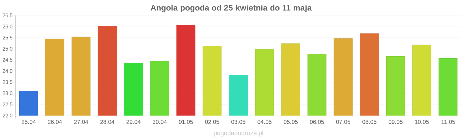 Z kolei jutro będzie jeszcze cieplej niż dziś w Angoli. Termometry pokażą w ciągu dnia 26 stopni.