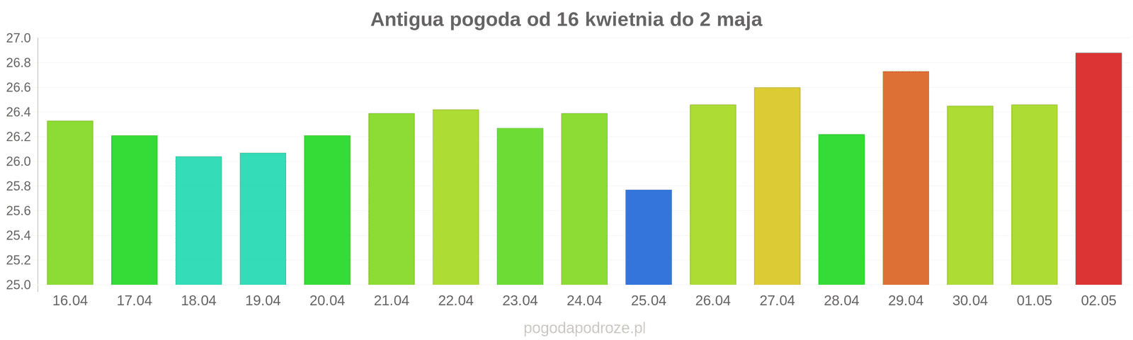 Z kolei jutro będzie jeszcze cieplej niż dziś w Antigui. Termometry pokażą w ciągu dnia 26 stopni.