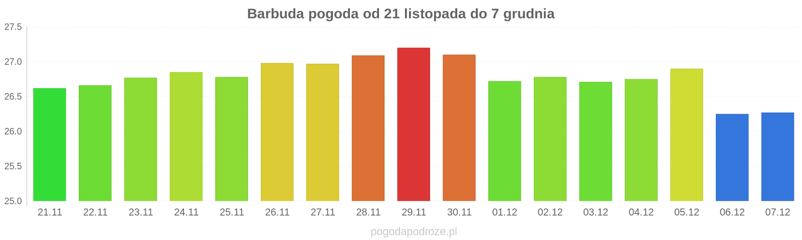 Z kolei jutro będzie jeszcze cieplej niż dziś w Barbudzie. Termometry pokażą w ciągu dnia 27 stopni.