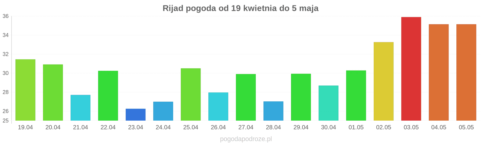 Jeśli damy wiarę prognozom z odstępem czasu 7 dni to czeka nas ochłodzenie w Rijad w przyszłym tygodniu. Temperatura w ciągu dnia powinna spaść do 30 stopni.