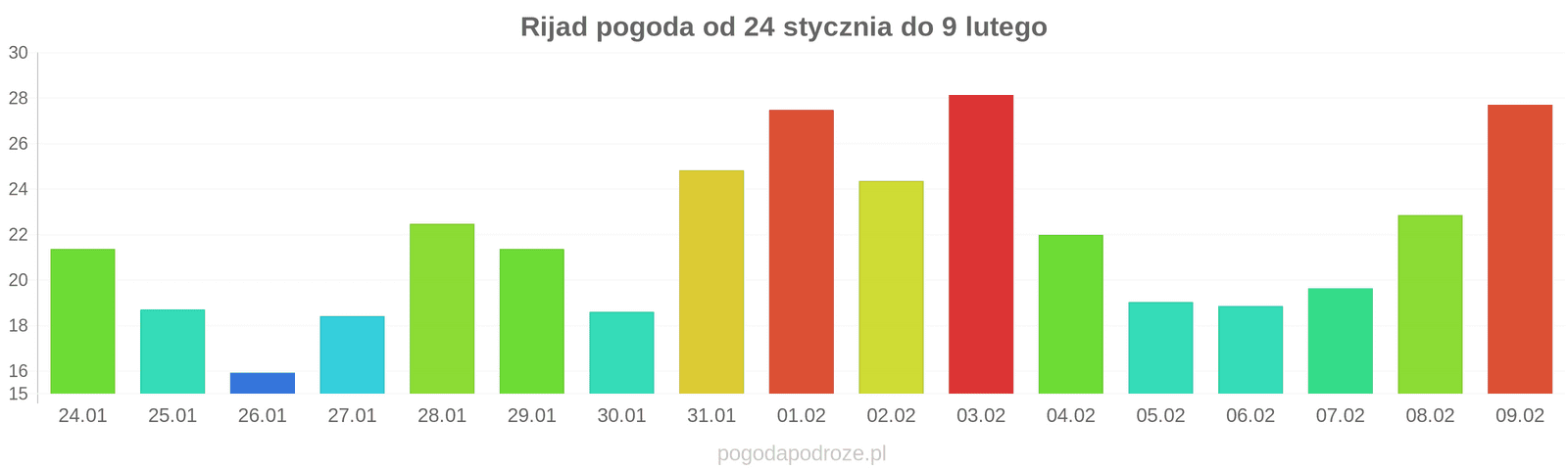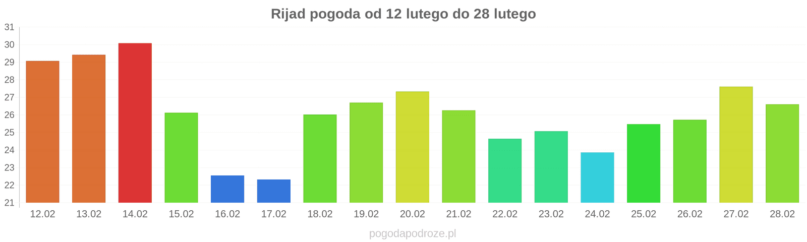 Najchłodniejszym miesiącem w Rijad jest styczeń. Średnia temperatura to mniej więcej 20 stopni.