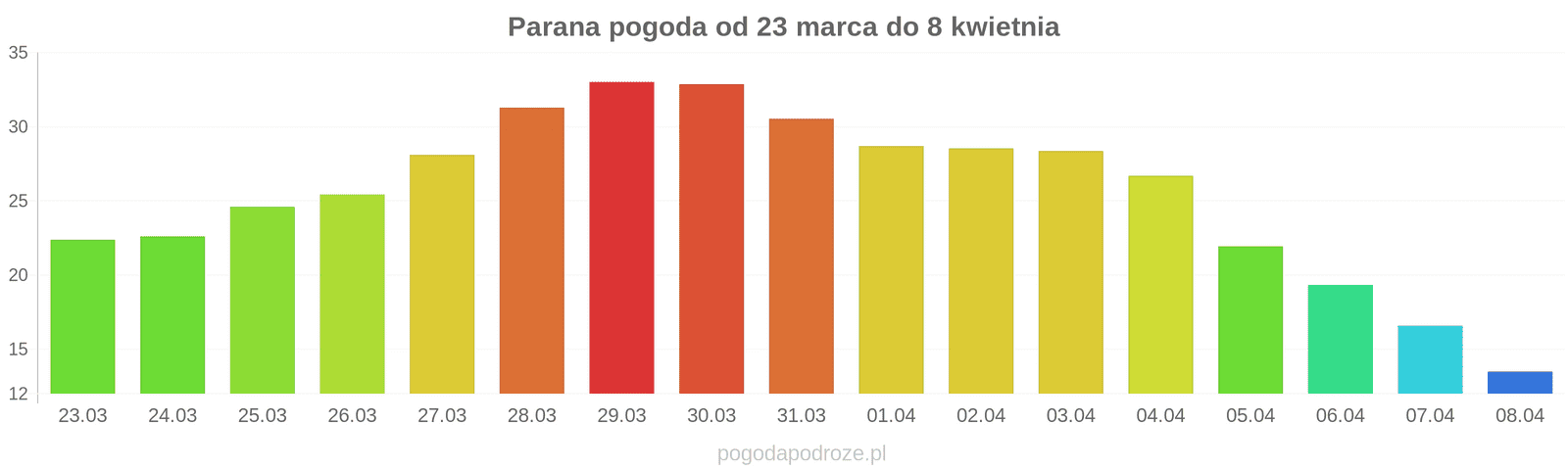 Temperatura wyniesie średnio: 33℃