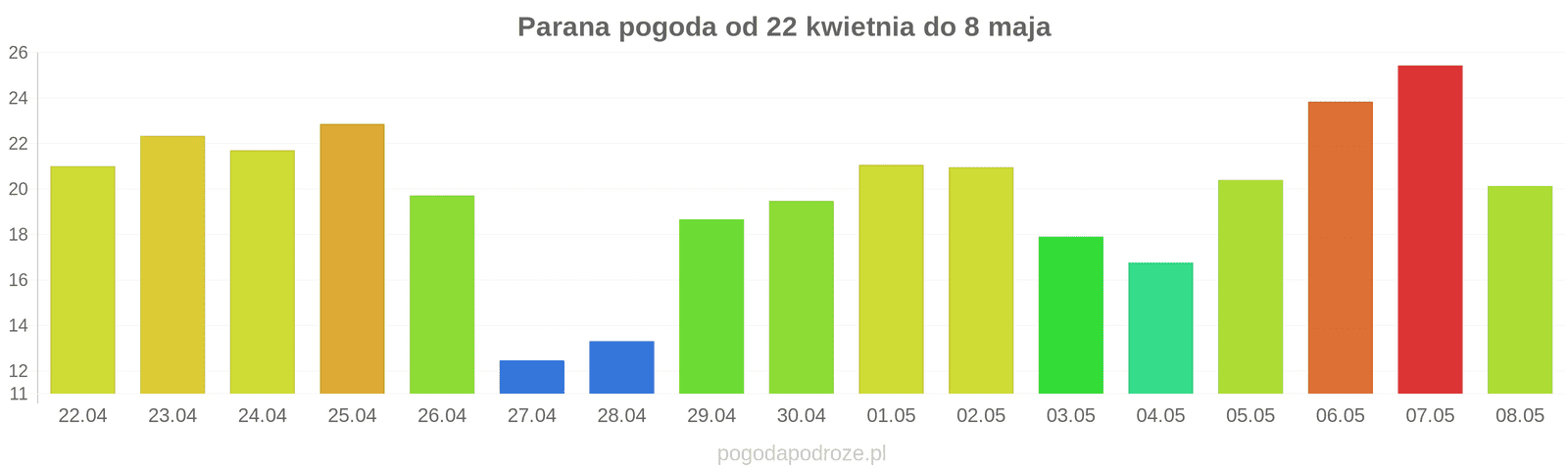 W nocy: 14℃Nad ranem: 11℃Wieczorem: 17℃słonecznieCiśnienie: 1017Wilgotność: 49%Wiatr: 5