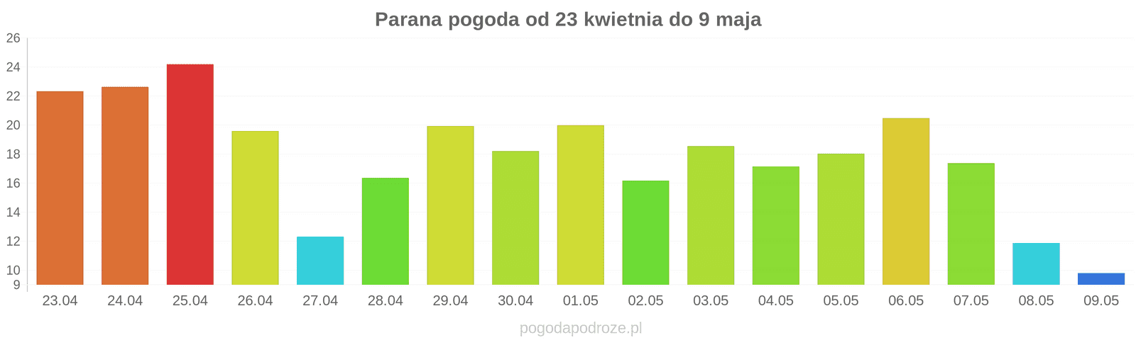 Dzisiaj będzie w sumie ciepło. W ciągu dnia temperatura wzrośnie do mniej więcej 22 stopni. A w nocy temperatura obniży się do 16 stopni.