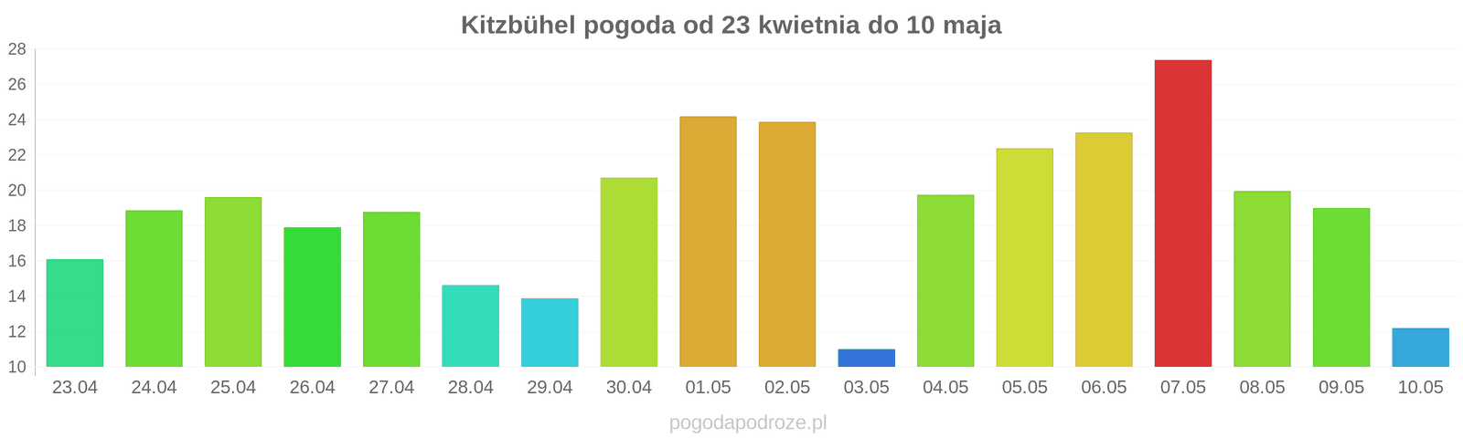 Opis pogody w najbliżych 10 dniach, Sprawdź kiedy będzie najcieplej, kiedy będzie słonecznie, a kiedy jest ryzyko opadów i zachmurzenia w Kitzbuhel. Warunki pogodowe oraz prognoza jest aktualizowana codziennie.