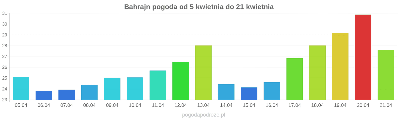 Jeśli chodzi o jutro, to temperatura będzie wyższa w Bahrajnie i wyniesie w ciągu dnia około 24 stopnie.