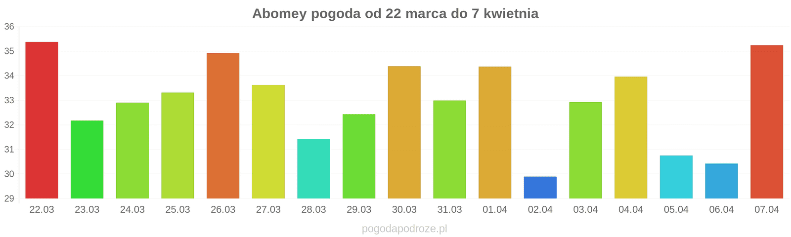 Temperatura wyniesie średnio: 33℃