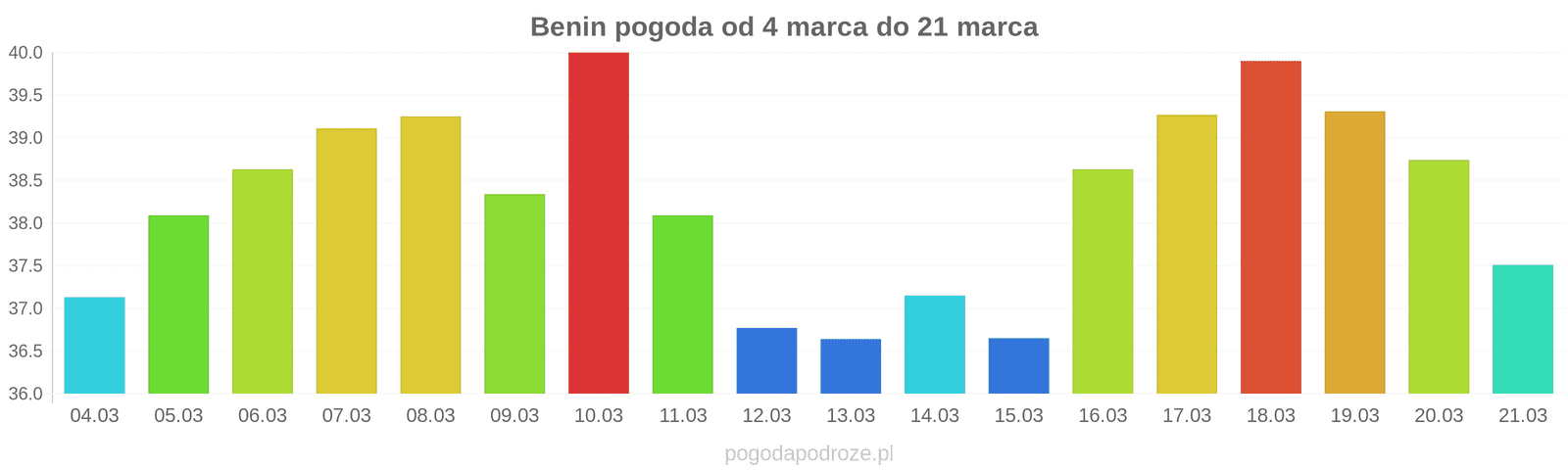 Jeśli damy wiarę prognozom z odstępem czasu 7 dni to czeka nas ochłodzenie w Beninie w przyszłym tygodniu. Temperatura w ciągu dnia powinna spaść do 37 stopni.