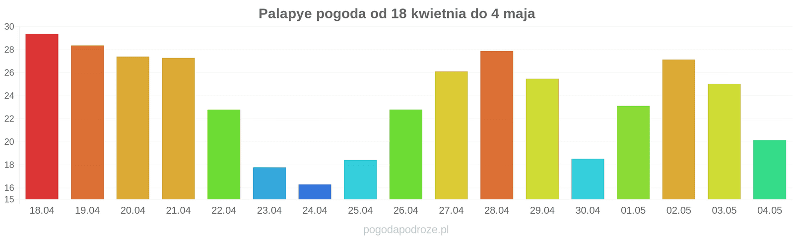 Jeśli damy wiarę prognozom z odstępem czasu 7 dni to czeka nas ochłodzenie w Palapye w przyszłym tygodniu. Temperatura w ciągu dnia powinna spaść do 23 stopni.