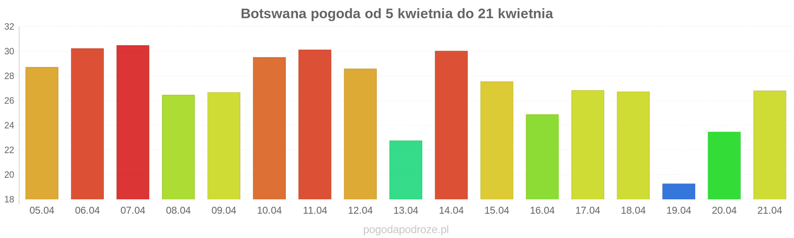Jeśli damy wiarę prognozom z odstępem czasu 7 dni to czeka nas ochłodzenie w Botswanie w przyszłym tygodniu. Temperatura w ciągu dnia powinna spaść do 23 stopni.