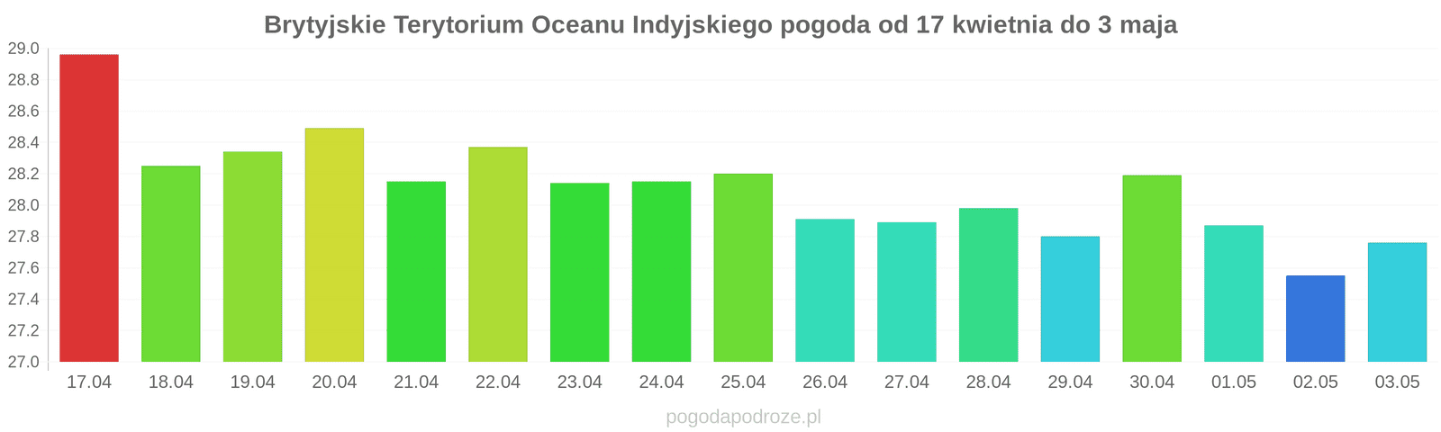 Z kolei jutro będzie jeszcze cieplej niż dziś w Brytyjskie Terytorium Oceanu Indyjskiego. Termometry pokażą w ciągu dnia 28 stopni.