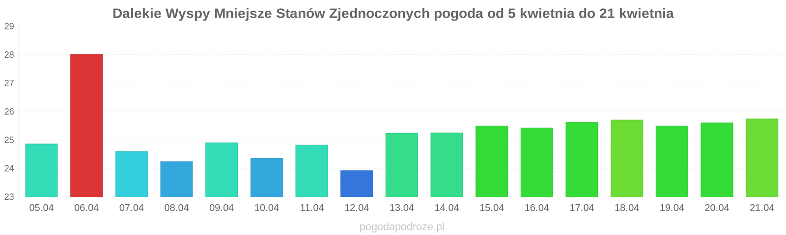 Jeśli damy wiarę prognozom z odstępem czasu 7 dni to czeka nas ochłodzenie na Dalekie Wyspy Mniejsze Stanów Zjednoczonych w przyszłym tygodniu. Temperatura w ciągu dnia powinna spaść do 25 stopni.