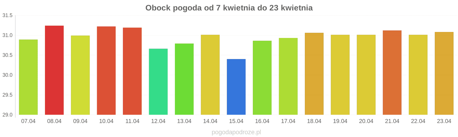 Temperatura wyniesie średnio: 31℃