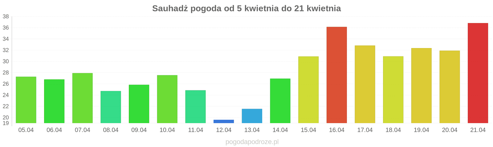 Temperatura wyniesie średnio: 27℃