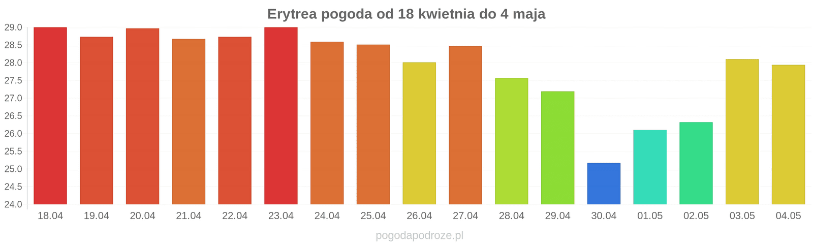 Z kolei jutro będzie jeszcze cieplej niż dziś w Erytrea. Termometry pokażą w ciągu dnia 29 stopni.