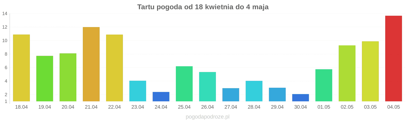 Opis pogody w najbliżych 10 dniach, Sprawdź kiedy będzie najcieplej, kiedy będzie słonecznie, a kiedy jest ryzyko opadów i zachmurzenia w Tartu. Warunki pogodowe oraz prognoza jest aktualizowana codziennie.