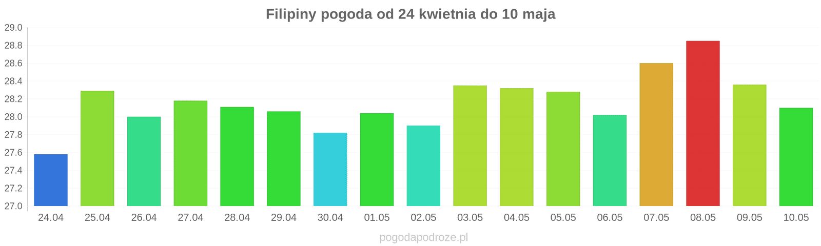 Temperatura wyniesie średnio: 28℃
