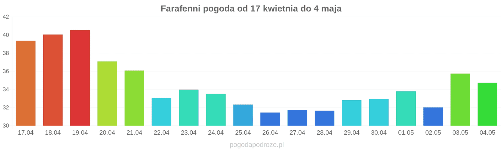 Jeśli damy wiarę prognozom z odstępem czasu 7 dni to czeka nas ochłodzenie w Farafenni w przyszłym tygodniu. Temperatura w ciągu dnia powinna spaść do 31 stopni.