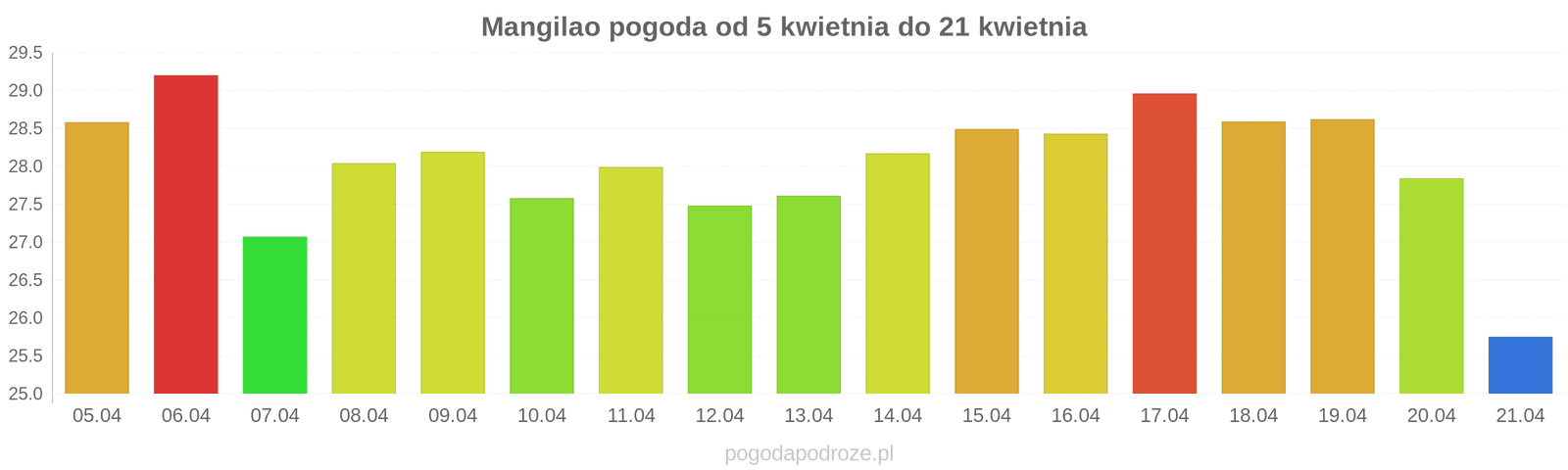 Temperatura wyniesie średnio: 29℃
