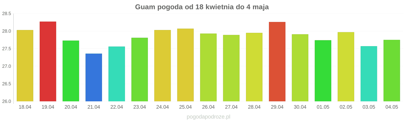 Temperatura wyniesie średnio: 27℃