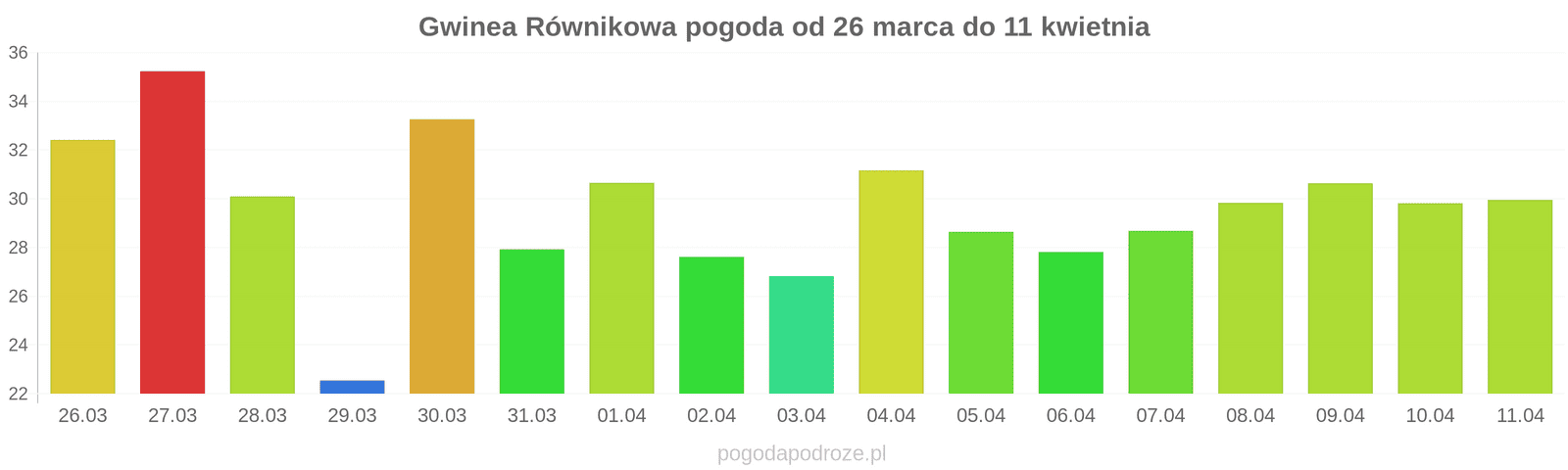 Opis pogody w najbliżych 10 dniach, Sprawdź kiedy będzie najcieplej, kiedy będzie słonecznie, a kiedy jest ryzyko opadów i zachmurzenia w Gwinea Równikowa. Warunki pogodowe oraz prognoza jest aktualizowana codziennie.
