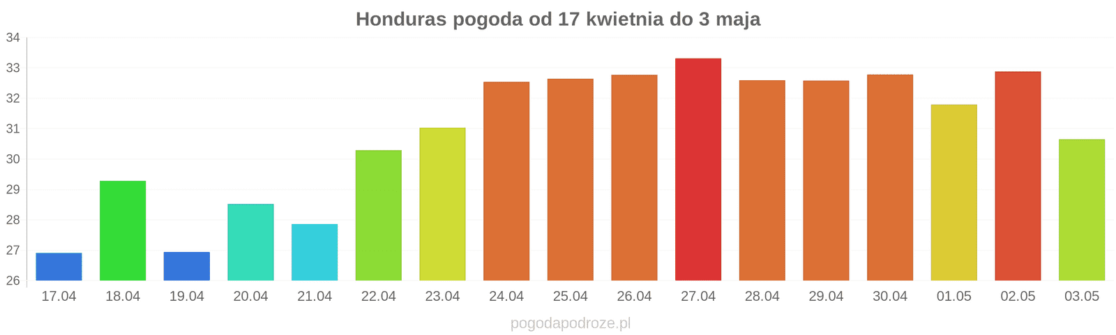 Z kolei jutro będzie jeszcze cieplej niż dziś w Hondurasie. Termometry pokażą w ciągu dnia 29 stopni.