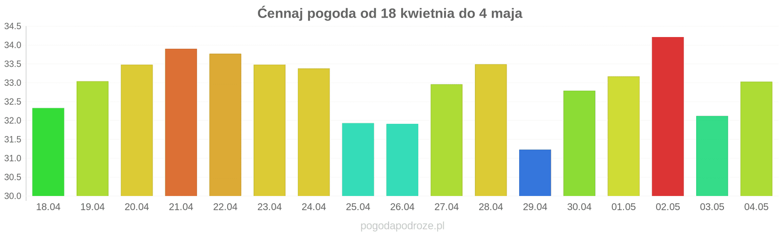 W nocy: 29℃Nad ranem: 28℃Wieczorem: 31℃słonecznieCiśnienie: 1009Wilgotność: 48%Wiatr: 9Zachmurzenie: 1%