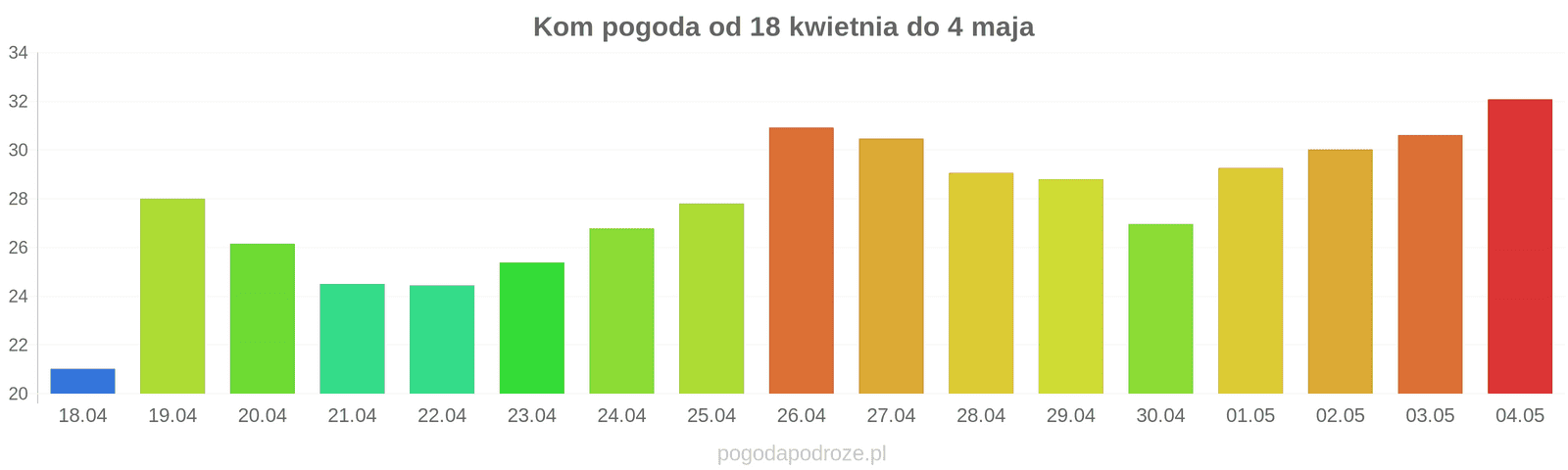 Pogoda w Kom dnia: 20 kwietnia 2026 ( poniedziałek)