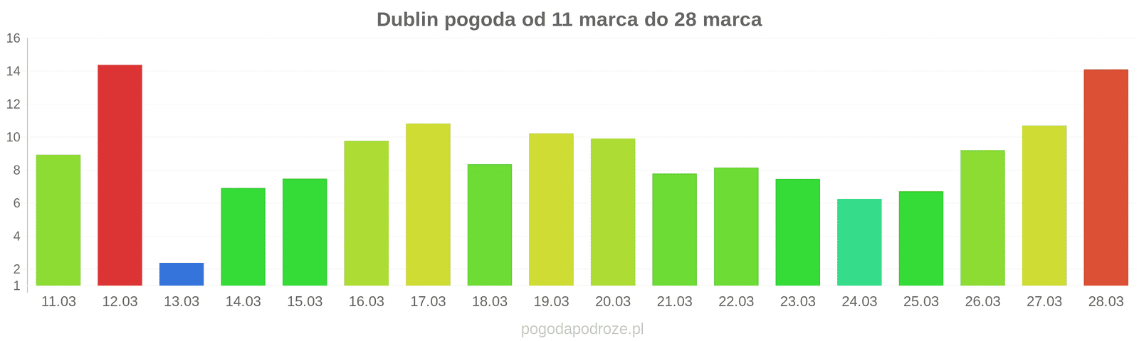 Pogoda w Dublinie dnia: 14 marca 2026 ( sobota)