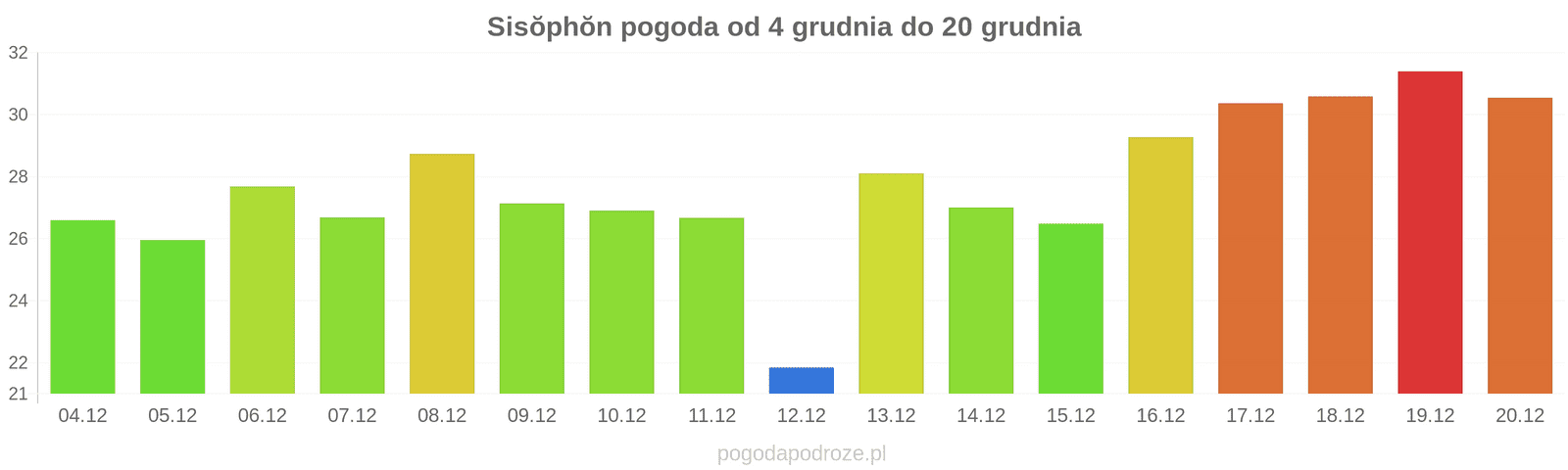 Opis pogody w najbliżych 10 dniach, Sprawdź kiedy będzie najcieplej, kiedy będzie słonecznie, a kiedy jest ryzyko opadów i zachmurzenia w Sisŏphŏn. Warunki pogodowe oraz prognoza jest aktualizowana codziennie.