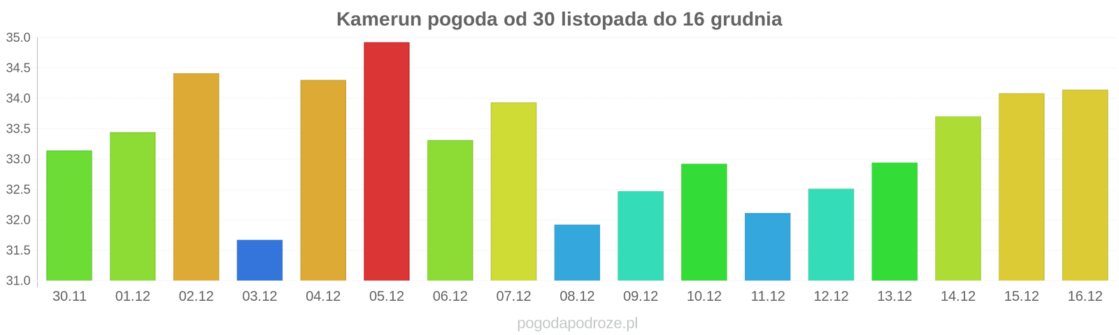 Z kolei jutro będzie jeszcze cieplej niż dziś w Kamerunie. Termometry pokażą w ciągu dnia 34 stopnie.