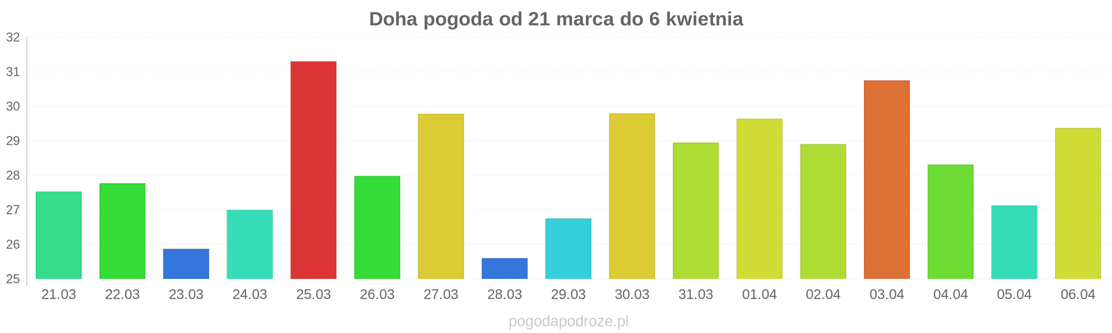 Jeśli damy wiarę prognozom z odstępem czasu 7 dni to czeka nas ochłodzenie w Doha w przyszłym tygodniu. Temperatura w ciągu dnia powinna spaść do 27 stopni.