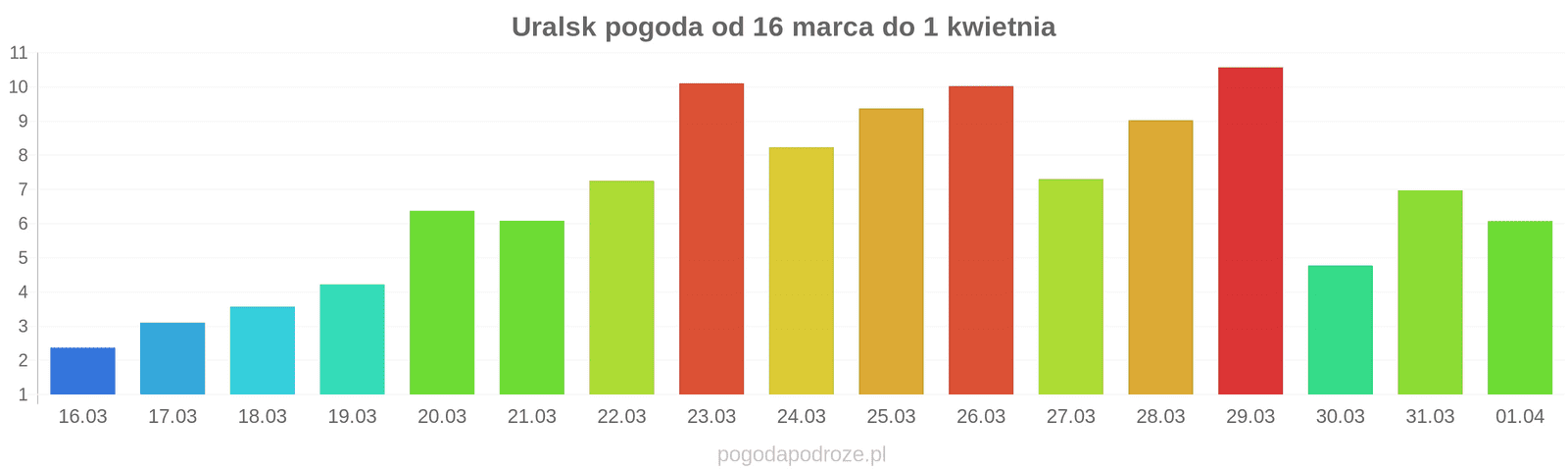 Pogoda w Uralsk dnia: 26 marca 2026 ( czwartek)