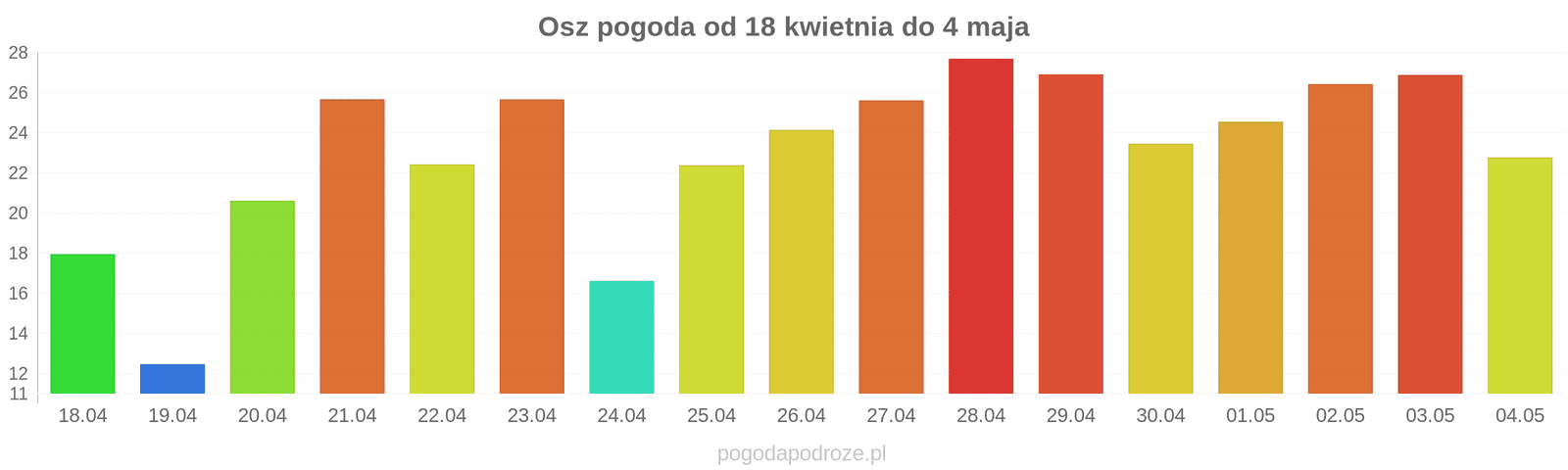 Temperatura wyniesie średnio: 28℃
