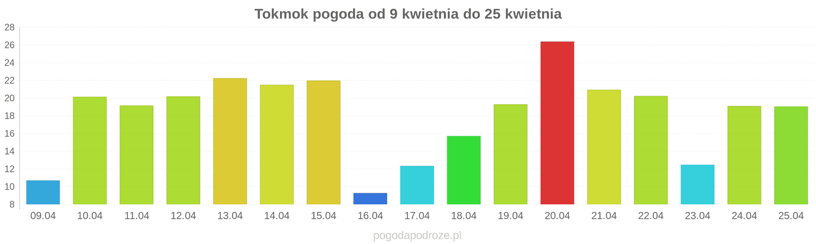 Opis pogody w najbliżych 10 dniach, Sprawdź kiedy będzie najcieplej, kiedy będzie słonecznie, a kiedy jest ryzyko opadów i zachmurzenia w Tokmok. Warunki pogodowe oraz prognoza jest aktualizowana codziennie.