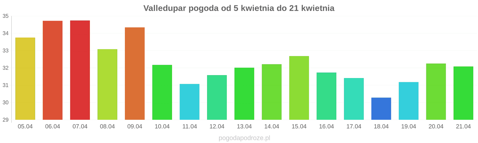 Temperatura wyniesie średnio: 34℃
