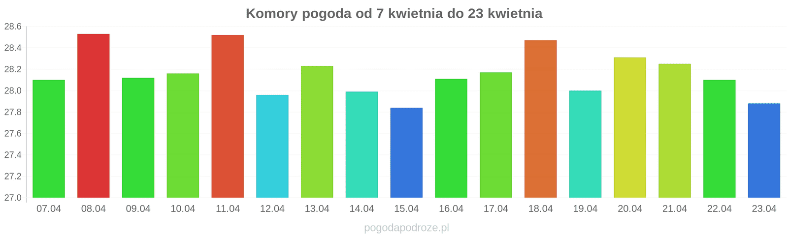 Temperatura wyniesie średnio: 28℃