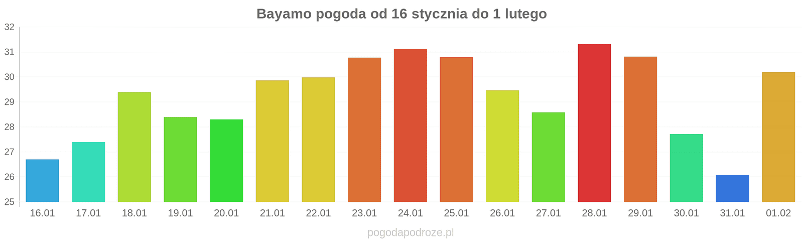 Temperatura wyniesie średnio: 31℃