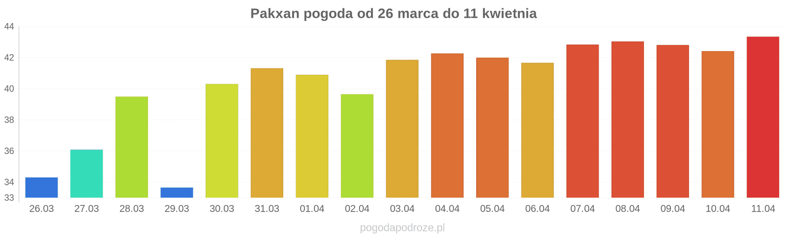 Jeśli wierzyć prognozom z odstępem czasu 7 dni to czeka nas dużo ciepła w Pakxan w przyszłym tygodniu. Temperatura w ciągu dnia osiągnie 42 stopnie.