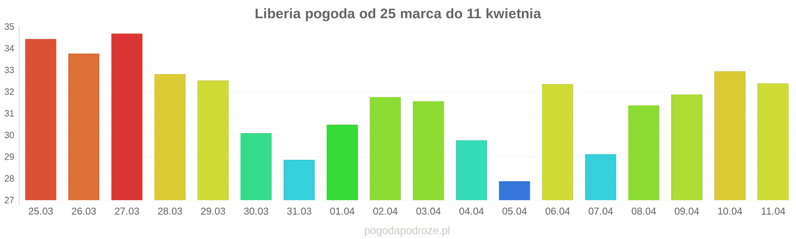 Temperatura wyniesie średnio: 33℃