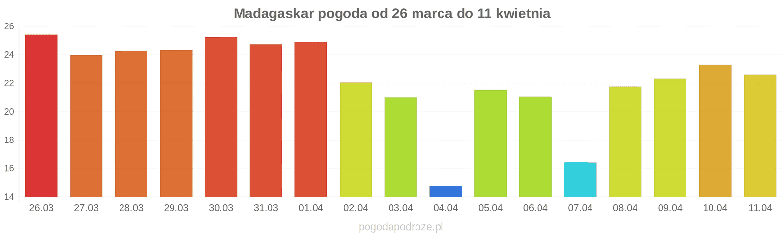 Temperatura wyniesie średnio: 25℃