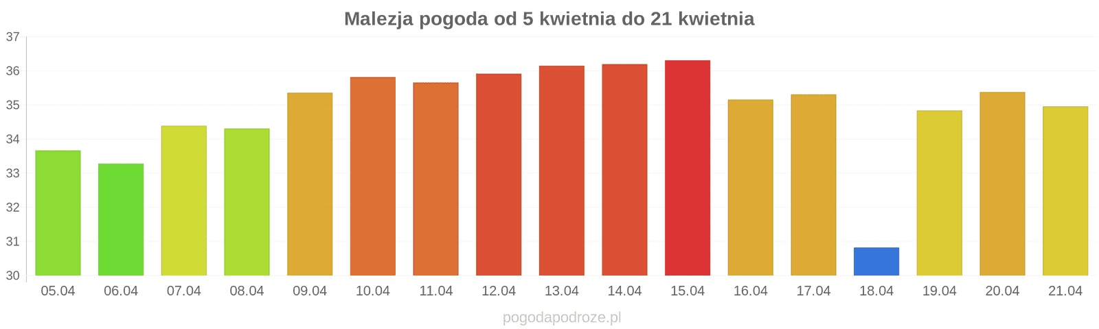 Jeśli wierzyć prognozom z odstępem czasu 7 dni to czeka nas dużo ciepła w Malezji w przyszłym tygodniu. Temperatura w ciągu dnia osiągnie 36 stopni.