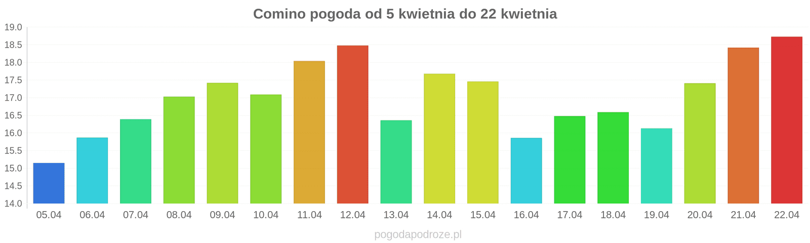 Opis pogody w najbliżych 10 dniach, Sprawdź kiedy będzie najcieplej, kiedy będzie słonecznie, a kiedy jest ryzyko opadów i zachmurzenia w Comino. Warunki pogodowe oraz prognoza jest aktualizowana codziennie.