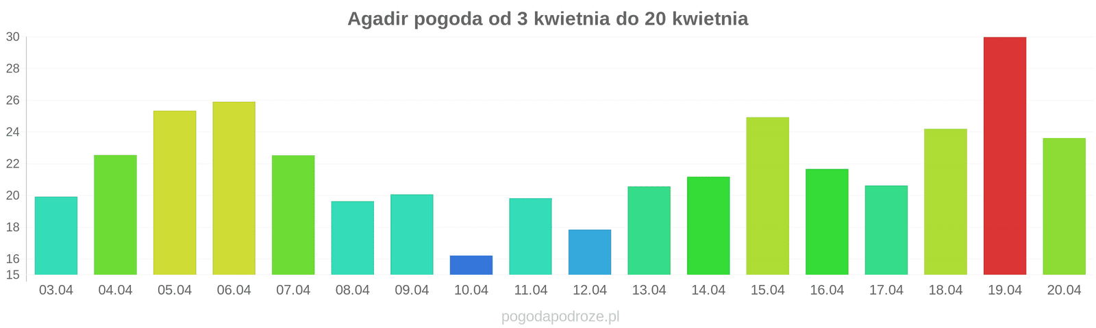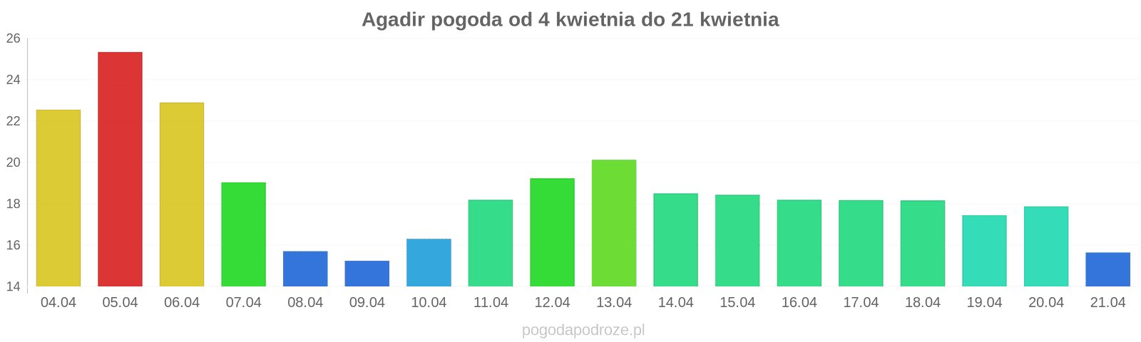 Opis pogody w najbliżych 10 dniach, Sprawdź kiedy będzie najcieplej, kiedy będzie słonecznie, a kiedy jest ryzyko opadów i zachmurzenia w Agadirze. Warunki pogodowe oraz prognoza jest aktualizowana codziennie.