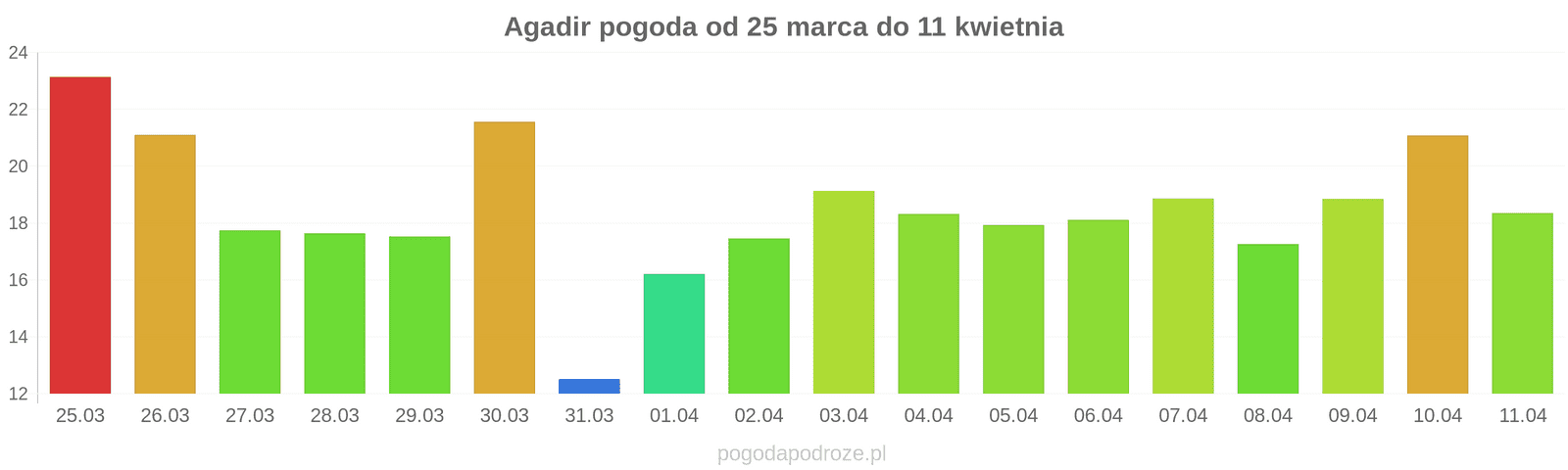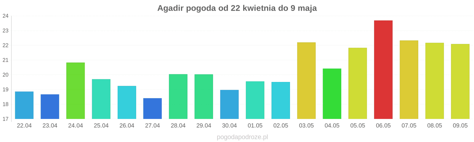 Średnia roczna temperatura w Agadirze zazwyczaj utrzymuje się poniżej 18 stopni Celsjusza, co czyni klimat tego regionu stosunkowo łagodnym. Najgorętszym miesiącem jest sierpień, kiedy to temperatury mogą sięgać nawet około 30 stopni Celsjusza. Szczególnie pierwszy tydzień sierpnia bywa najcieplejszy i warto wtedy przygotować się na upały.