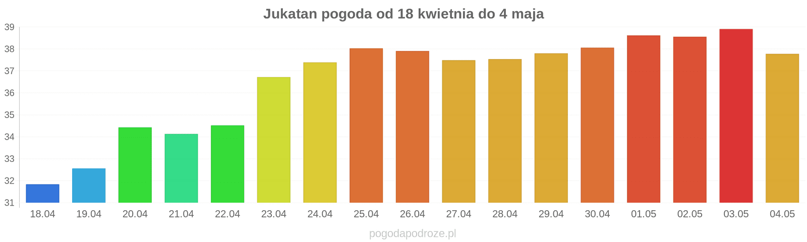 Opis pogody w najbliżych 10 dniach, Sprawdź kiedy będzie najcieplej, kiedy będzie słonecznie, a kiedy jest ryzyko opadów i zachmurzenia w Jukatanie. Warunki pogodowe oraz prognoza jest aktualizowana codziennie.