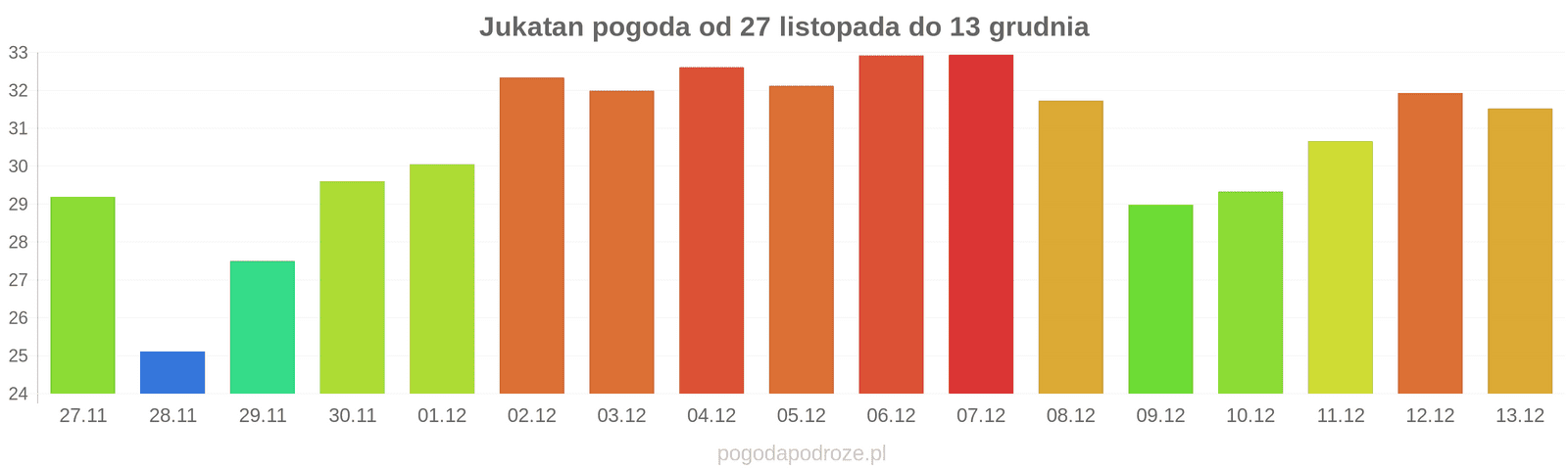 Jeśli wierzyć prognozom z odstępem czasu 7 dni to czeka nas dużo ciepła w Jukatanie w przyszłym tygodniu. Temperatura w ciągu dnia osiągnie 33 stopnie.
