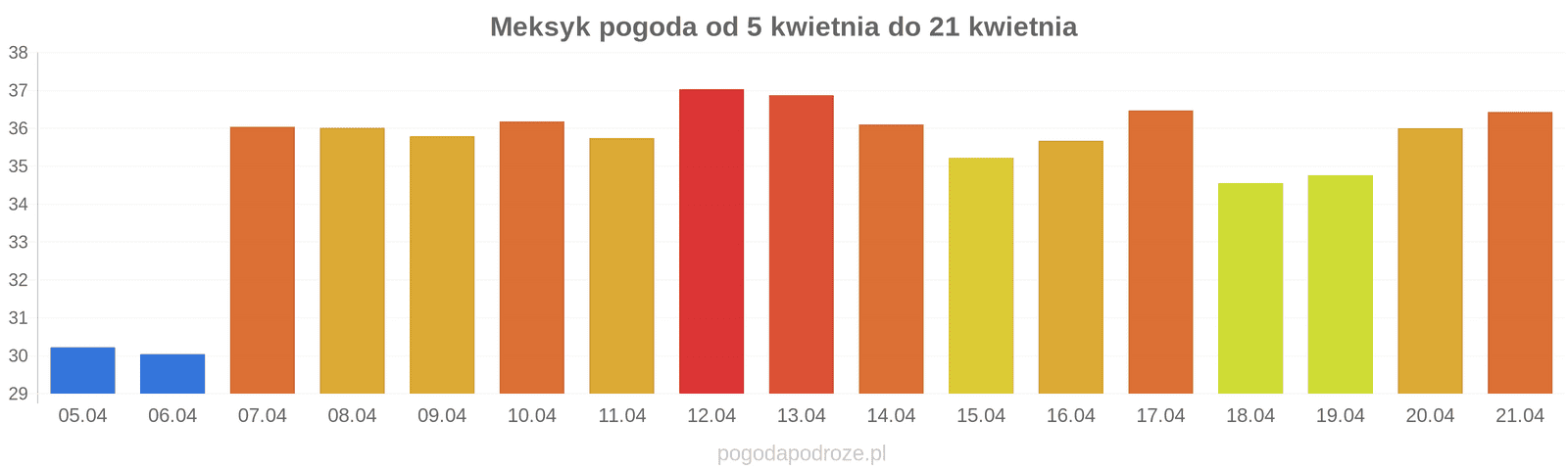 Z kolei jutro będzie jeszcze cieplej niż dziś w Meksyku. Termometry pokażą w ciągu dnia 36 stopni.